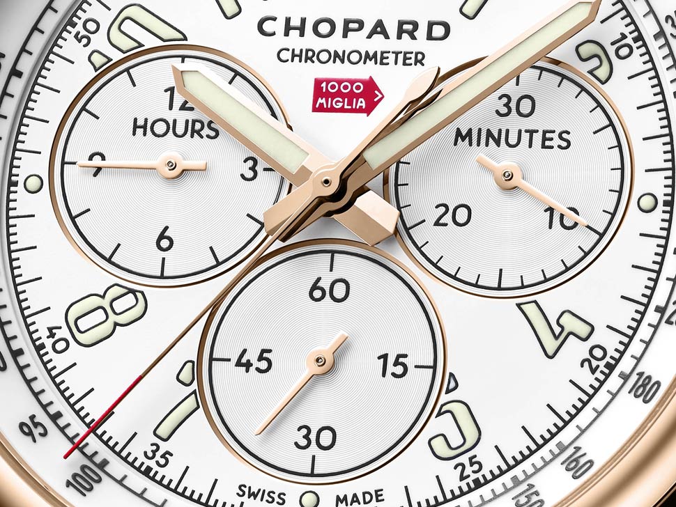 O novo modelo, edição limitada de 90 exemplares, tem caixa de ouro rosa e movimento de cronógrafo L.U.C, que fazem deste relógio o modelo Mille Miglia mais sofisticado já apresentado pela Chopard, patrocinadora do evento desde 1988.