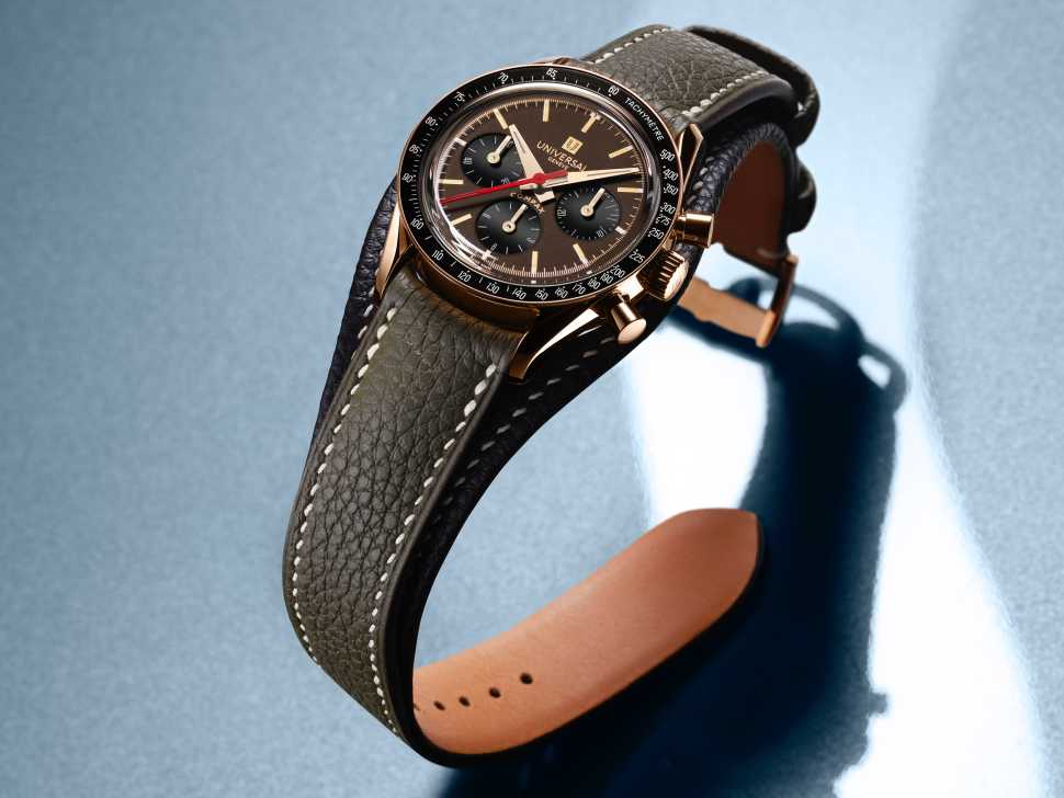 Cada pulseira foi gravada a quente com as assinaturas Universal Genève e Hosoï-Paris. A paleta de cores é contemporânea, mas atemporal: marrom ou preta combinada com relógios em ouro branco; em tom cinza-castanho ou verde-oliva combinada com ouro vermelho. Como seria de esperar, as pulseiras Tribute to Compax foram criadas em Paris, a mesma cidade onde Nina transformou o seu relógio pela primeira vez e onde a sua história fica agora completa.