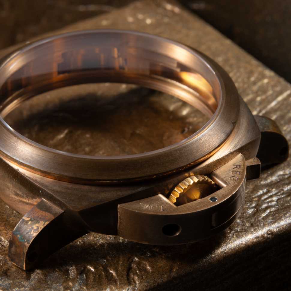 Diferentemente das ligas de bronze típicas da relojoaria, o bronze da Panerai possui uma composição especial, onde o uso de cobre e estanho puros promovem a criação de uma pátina distinta na superfície. Graças a essa evolução especial, essa liga se tornou um verdadeiro trunfo para a marca, consolidando os relógios de bronze da Panerai como alguns dos mais cobiçados.