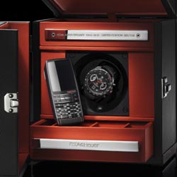 A TAG Heuer comemora em 2010 os seus 150 anos, e entre os lançamentos alusivos está um "Coffret" especial com rotor de movimento, que une um Grand Carrera Calibre 17 RS Chronograph a um telefone celular TAG Heuer Meridiist.
