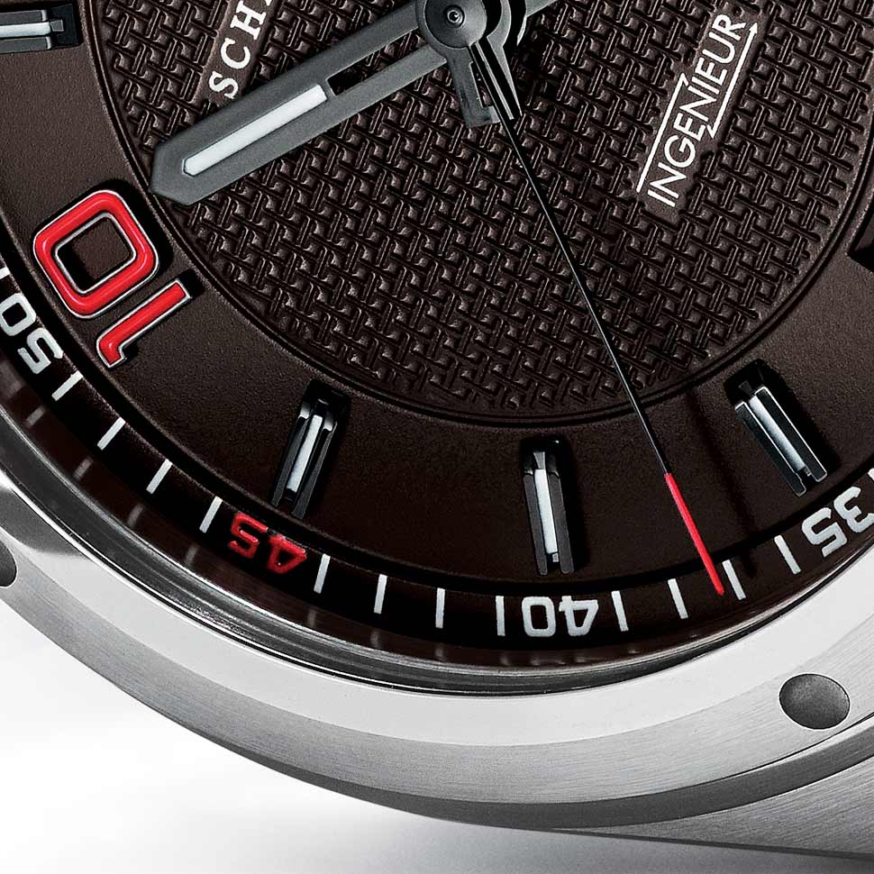 Enquanto a primeira Edição Zinédine Zidane da IWC Schaffhausen ainda tinha as cores da seleção francesa, o novo Grande Ingenieur Edição Zinédine Zidane corresponde ao gosto individual do futebolista. É assim que surge com um mostrador castanho-escuro. O número arábico "10" está realçado em vermelho vivo.
