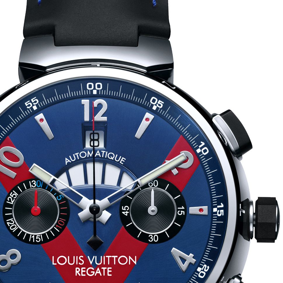 Combinação de estética e performance, o Tambour Automatic Regatta Navy, equipado com o movimento de cronógrafo calibre LV171 (Dubois Dépraz), oferece aos entusiastas dos esportes náuticos as funções de contagem regressiva e de flyback, funções estas que são indispensáveis para avaliar o seu desempenho.