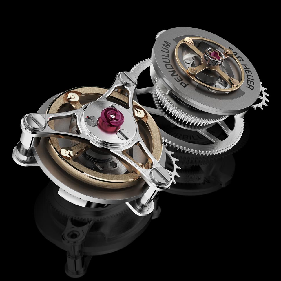 O TAG Heuer Carrera MikroPendulumS é um MikrotourbillonS com 2 pêndulos magnéticos substituindo as espirais, um para mostrar a hora e o outro para o cronógrafo.