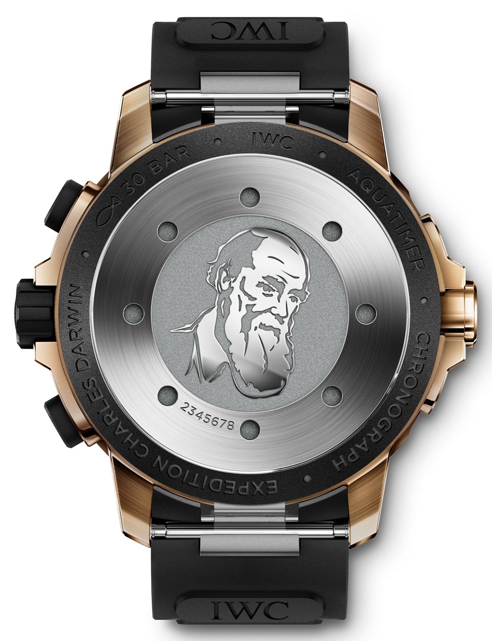 Com o Aquatimer Cronógrafo Edição "Expedition Charles Darwin", homenagem ao cientista e naturalista que obteve, nas Ilhas Galápagos, conhecimentos fundamentais sobre a diversidade das espécies, a IWC Schaffhausen emprega pela primeira vez o bronze na caixa de um relógio.