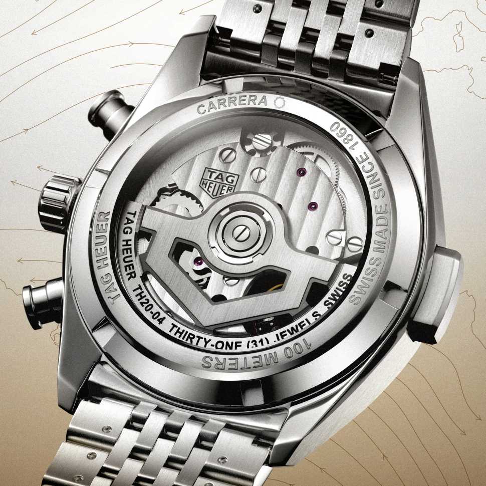 No coração do TAG Heuer Carrera Chronograph Seafarer está o novo movimento automático manufatura TH20-04, desenvolvido especificamente para incorporar a função de indicador de marés.