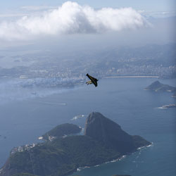 Yves “Jetman” Rossy superou novamente os limites da aeronáutica, ao realizar um voo fabuloso sobre a cidade do Rio de Janeiro, no Brasil.