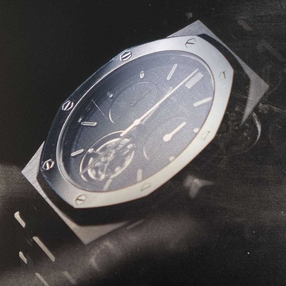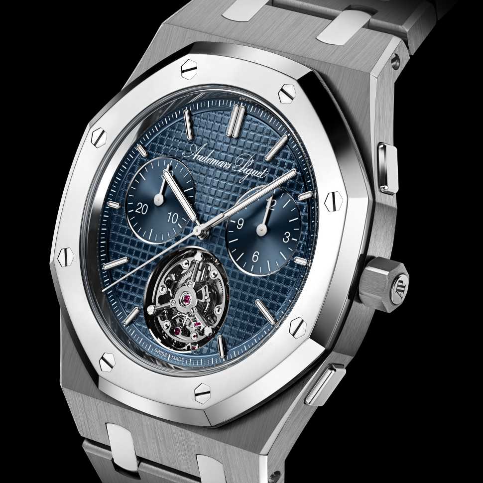 Pela primeira vez em seus 50 anos de história, o Royal Oak "Jumbo" é equipado com um cronógrafo automático e um turbilhão volante - uma dupla complicação que representou desafios significativos para as equipes da Audemars Piguet, dadas as proporções icônicas do modelo.