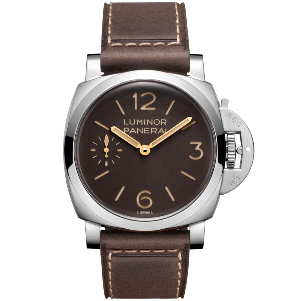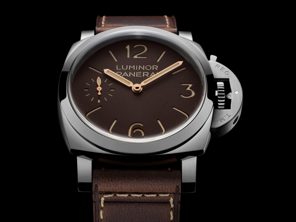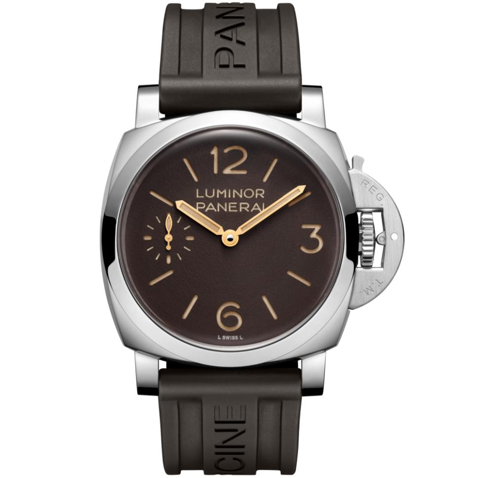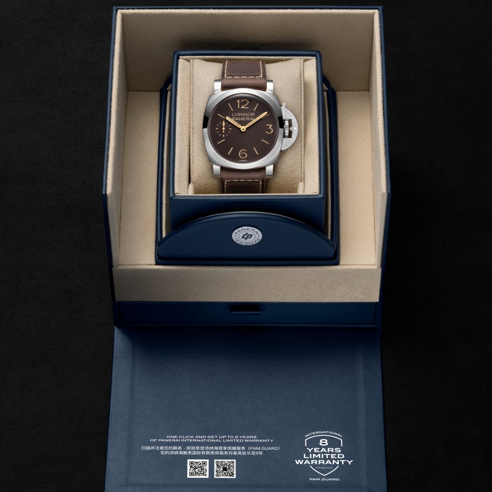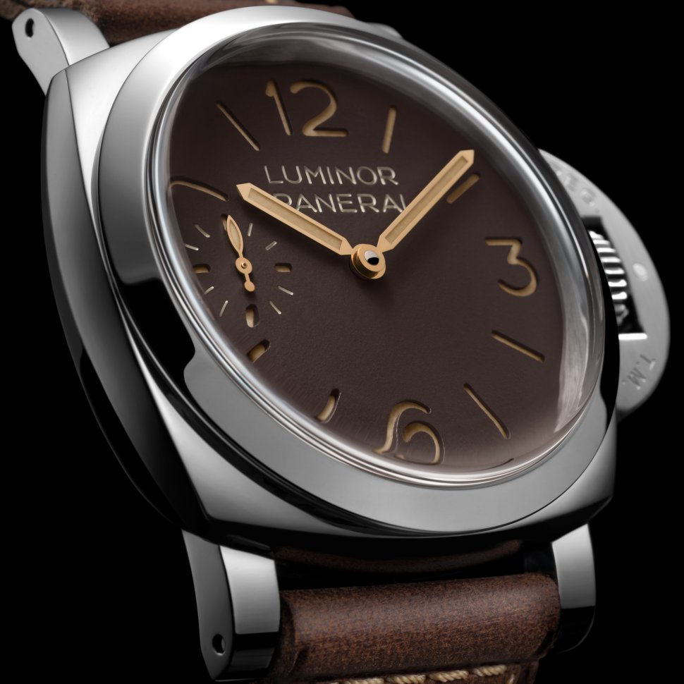 O mostrador cor de tabaco do PAM01731 traz de volta ao portfólio da Maison um tom marrom profundo. Sua construção em sanduíche, composta por duas placas sobrepostas para maior visibilidade em todas as condições de luz, combinada com o pequeno segundo às 9 horas, reflete a expressão tradicional desta referência e é complementada por uma pulseira reta em couro de bezerro marrom escuro em estilo vintage e uma segunda pulseira em borracha na mesma tonalidade, tornando-o o companheiro ideal para expedições de mergulho.