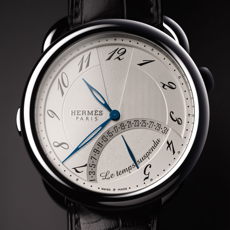 O relógio Arceau "Le Temps Suspendu" busca dissimular o tempo, removendo-o do mostrador, mas sem interromper sua marcha incessante. Esta nova complicação relojoeira, desenvolvida por Jean-Marc Wiederrecht exclusivamente para a Hermès, é uma novidade mundial.