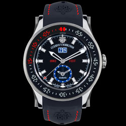 Este relógio de mergulho, cuja caixa modular é feita de aço, titânio e borracha, é resistente à água a 1.882 pés, uma profundidade simbólica, pois a Cuervo y Sobrinos foi fundada em 1882.