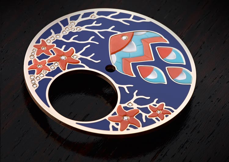 Il Giardino Marino di Bvlgari é um relógio que obtém o notável feito de unir a arte da pintura em miniatura - uma valiosa técnica que data da idade de ouro do Renascimento - à perfeição da alta joalheria, especialidade dos mestres artesãos da Bvlgari, e à precisão da alta relojoaria Suíça.