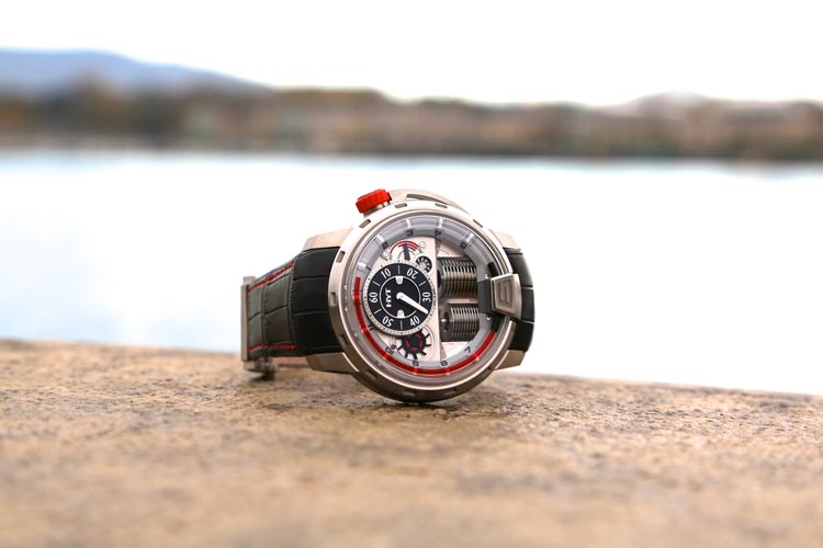 O modelo utiliza um fluido vermelho para indicar as horas - a cor de Genebra e da Suíça. O ajuste líquido, muito mais complicado do que aparenta ser, exigiu 18 meses de trabalho.