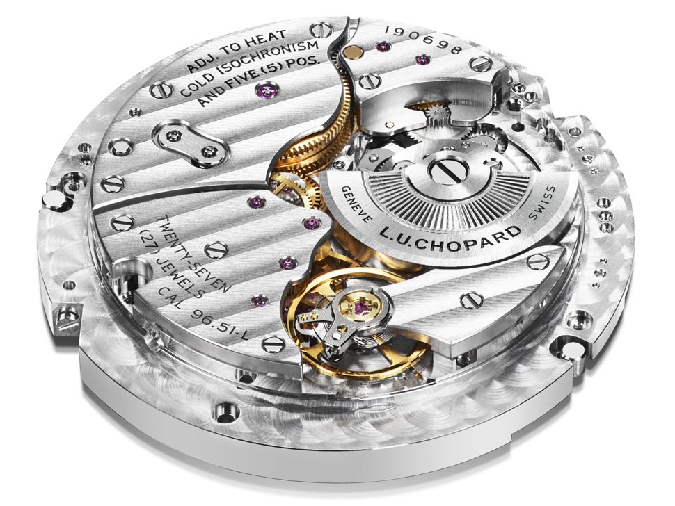 Calibre automático com microrrotor L.U.C 96.51-L, certificado COSC