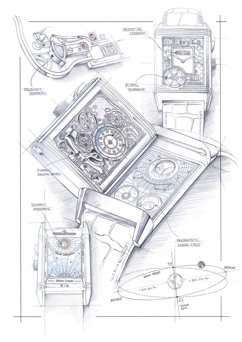 O modelo é resultado de mais de seis anos de desenvolvimento, combinando áreas-chave do savoir-faire da Jaeger-LeCoultre com inovadoras indicações astronômicas. Trata-se do primeiro relógio de pulso do mundo com quatro mostradores.
