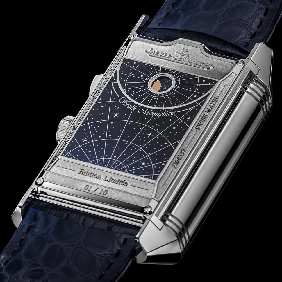 Pela primeira vez na história da relojoaria mecânica, a Jaeger-LeCoultre reúne três indicações lunares - o ciclo sinódico, o ciclo dracônico e o ciclo anomalístico - em um relógio de pulso. Essa combinação, localizada no mostrador interno da base da caixa do Calibre 185, permite a determinação de eclipses (tanto solares quanto lunares) e fenômenos lunares raros, como as superluas.