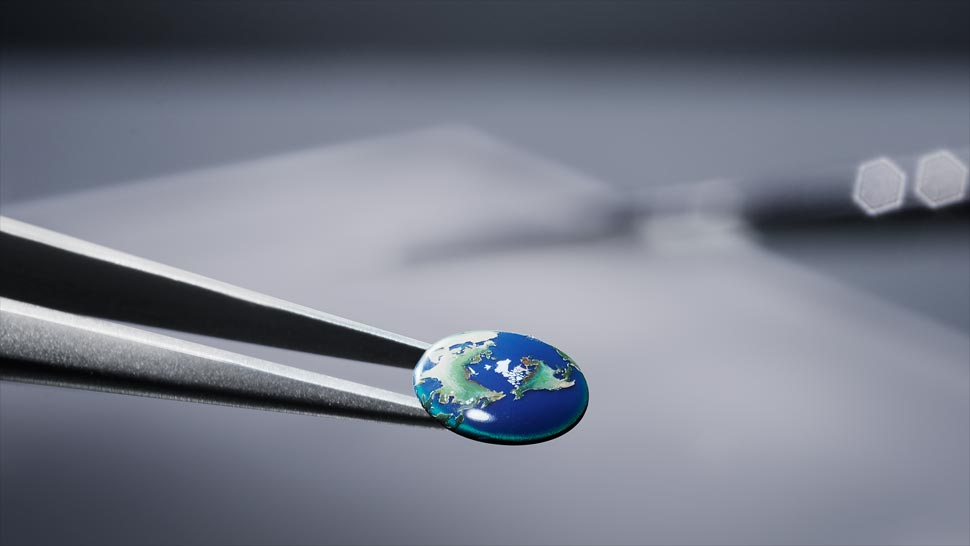 No último mostrador do Quadriptyque, a face exterior da base da caixa, é exibida uma representação das fases da Lua no Hemisfério Sul. Um mapa celeste pontilhado de estrelas, gravado e laqueado em degradê de tons azuis, forma o pano de fundo para a lua em ouro rosa, tudo isso criado no Atélier des Métiers Rares da Jaeger-LeCoultre.
