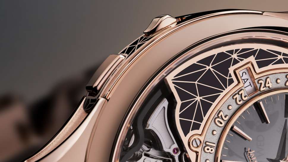 Além disso, a interpretação Hybris Artistica apresenta técnicas de esmalte Grand Feu do ateliê de Métiers Rares da Manufatura em seu mostrador e um trabalho em laca na lateral da caixa.