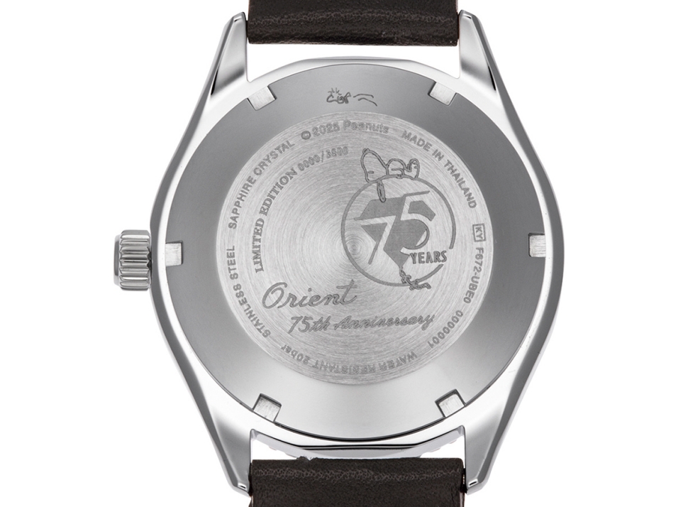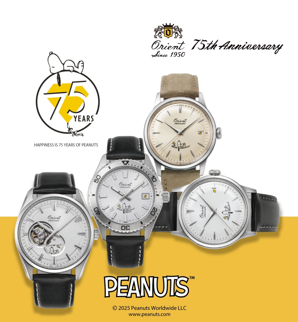 Fundada em 1950, a Orient conquistou credibilidade como uma marca confiável de relógios, sendo reconhecida por seus modelos mecânicos fabricados in-house e por sua presença em mais de 70 países. Também comemorando 75 anos, a franquia Peanuts teve início em 1950 como uma tira de quadrinhos publicada nos jornais dos Estados Unidos.