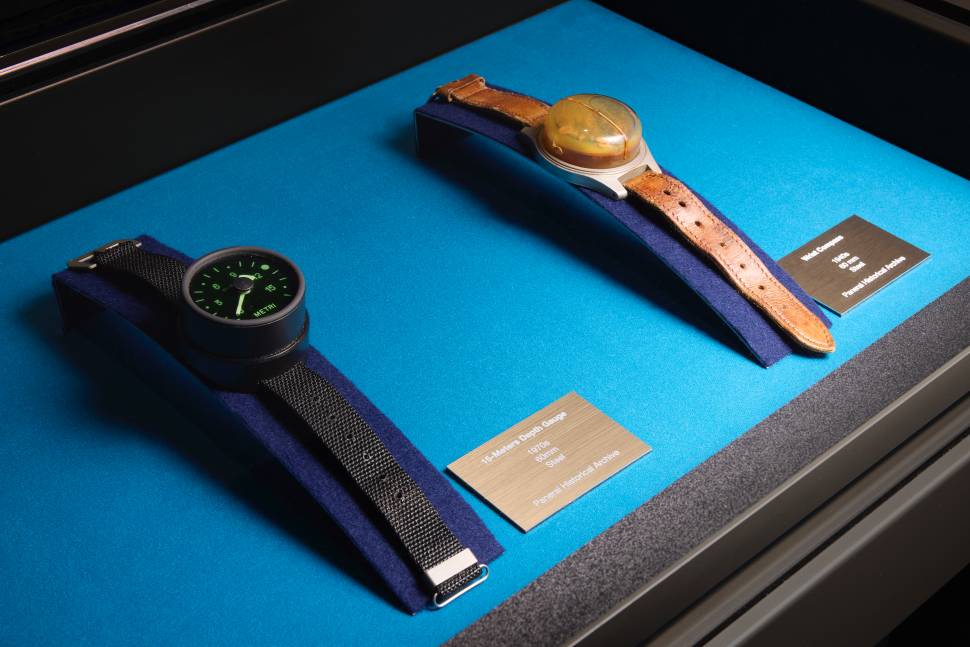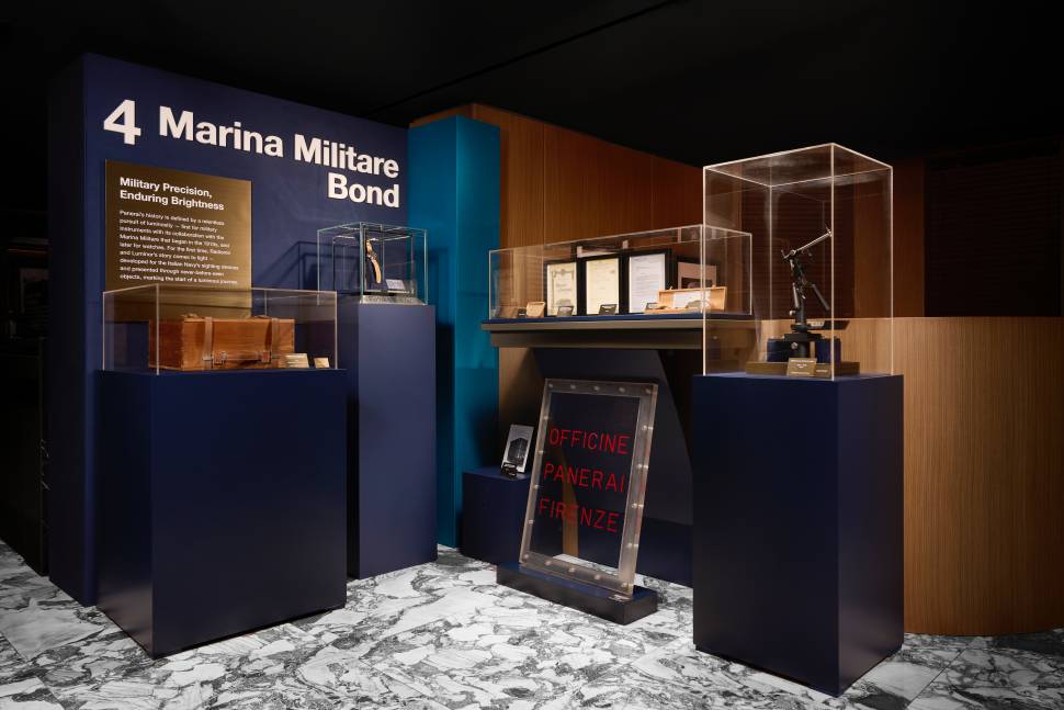 Em exposição, estão materiais de arquivo inéditos, incluindo correspondência pessoal entre a família Panerai e a Marina Militare, desenhos técnicos, catálogos antigos e fotografias históricas originais. Instrumentos como bússolas e medidores de profundidade são exibidos ao lado de relógios históricos, certificados de patentes e marcas registradas que documentam o trabalho inovador da Panerai em luminosidade, legibilidade subaquática e design de instrumentos.