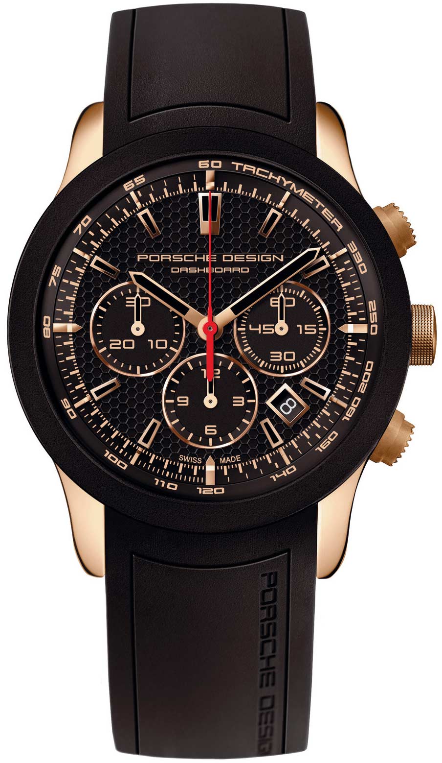 Três cronógrafos da série Dashboard e o Worldtimer P'6750 foram selecionados. Pela primeira vez, dois modelos Dashboard apresentam uma caixa em ouro rosa, complementada por um aro em camadas de borracha e titânio. O ouro rosa, elegante e clássico, contrasta com o desenho esportivo e moderno dos relógios.