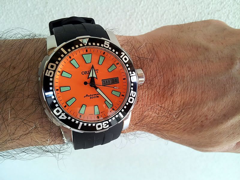 Postado Por: Koyatsu Data de Postagem: Saturday, May 25, 2013 às 18:26 Quote: Originalmente postado por heracles em 25/05/2013 10:28:58 Heracles, lindo Seiko. Só uma dúvida, o dia da semana não está em português, nem em inglês. Qual língua seria ? @ Dorotheo Belo Orient. Esse é o Poseidon ? Ou estilo ele ? Sempre li aqui no fórum que o pessoal só fala bem do Orient Poseidon. Da até vontade de comprar um. Abraços. Postado Por: Dorotheo Data de Postagem: Saturday, May 25, 2013 às 21:12 Koyatsu bem vindo ao forum. O dia da semana do seiko do Heracles está em espanhol. Quanto ao meu laranjão, é um Orient Mako 1 que é bem menor e mais leve que o poseidon. O Mako 1 tem 42mm e tem preto, azul, azul pepsi, laranja e amarelo. Sou muito fã deste relógio, mas está ficando raro e caro. Abs e de uma olhada nos vários modelos da orient, como também os Orient Ray, que são a evolução dos Makos. p.s. não tenho nada com a empresa Orient. Postado Por: Deko Data de Postagem: Sunday, May 26, 2013 às 10:35 Bom dia!! Hoje domingão de BM ![]() ![]() Um bom domingo a todos! Abraços Décio Postado Por: naio21 Data de Postagem: Monday, May 27, 2013 às 14:06 This: